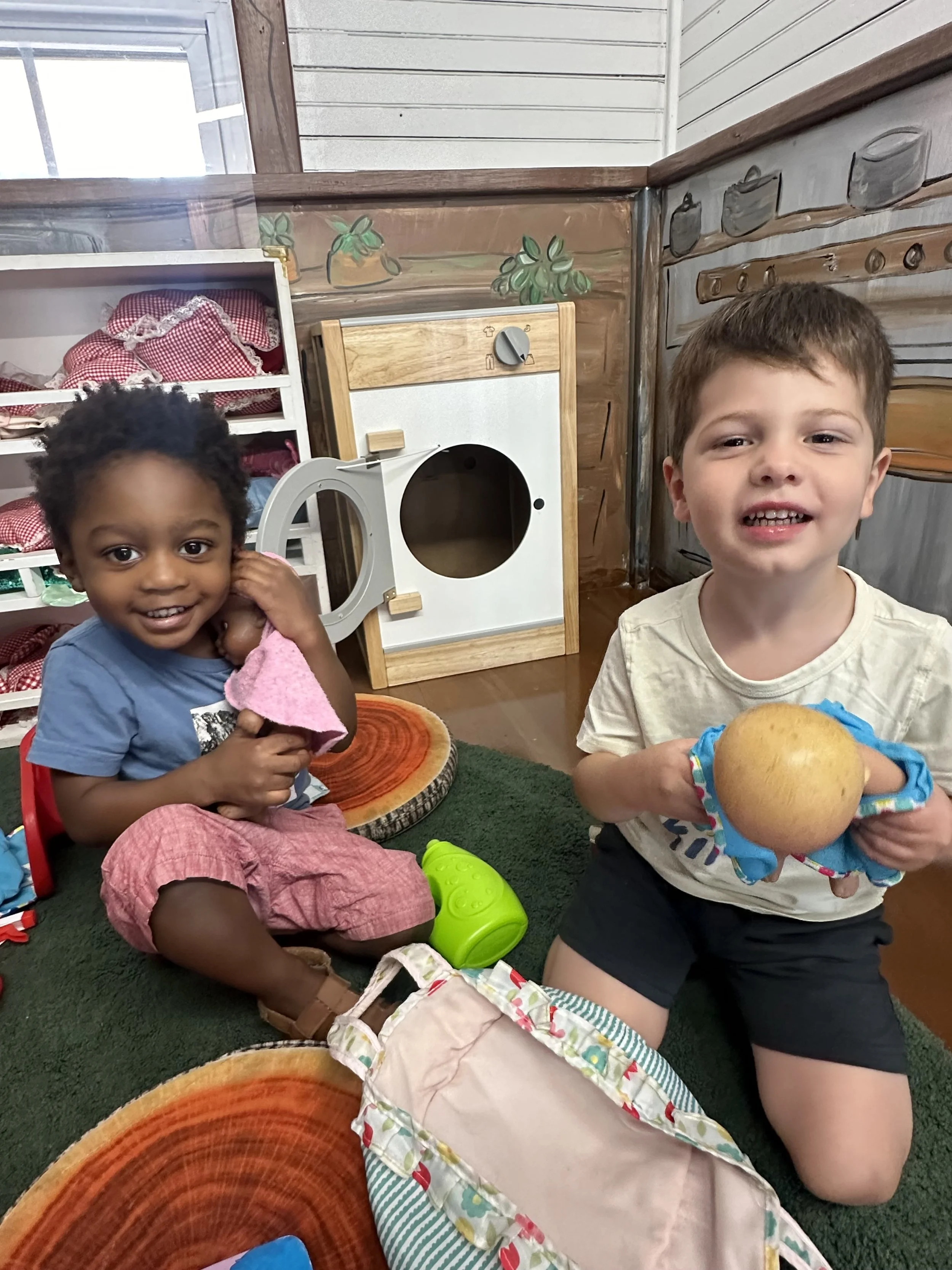 Our curriculum utilizes creative approaches to expose children to all kindergarten readiness skills. Through silly skits, puppetry, and entertaining hands-on tasks, children are taught letter recognition, letter sounds, math skills, gross motor development, fine arts, and handwriting. Our non-competitive teaching style supports each child's unique qualities, allowing them to grow at their rate.